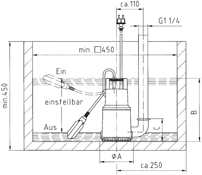 型號(hào) | 直徑A | 總高B | 最小啟動(dòng)液位 | 最小停止液位 |